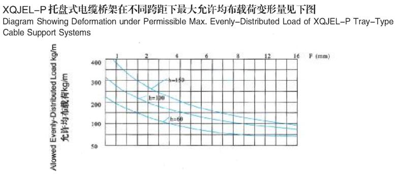 XQJEL_P.04托盤式四通產品型號、規格、重量等參數及XQJEL_P托盤式電纜橋架在不同跨距下允許均布載荷變形量。