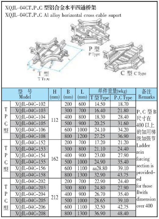 XQJL-04CT、P、C型鋁合金水平四通橋架