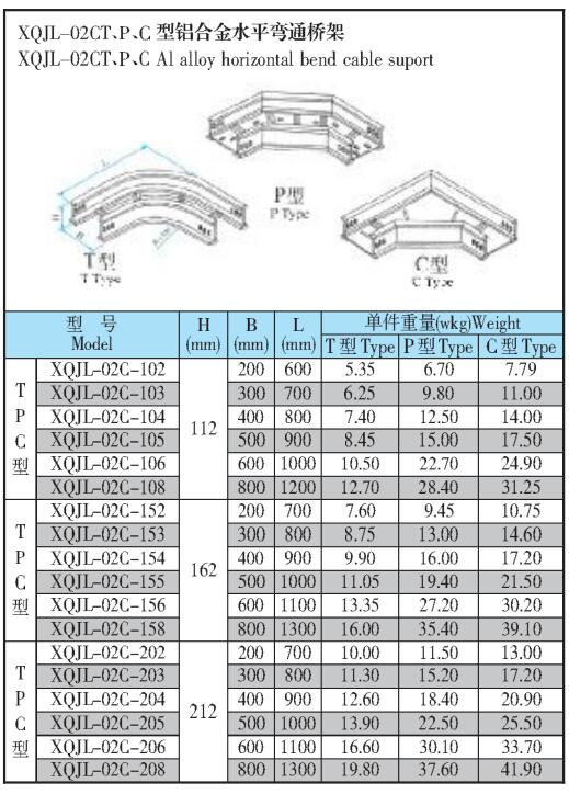 XQJL-02CT、P、C型鋁合金水平彎通橋架