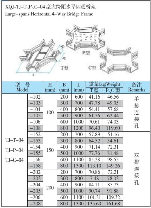 XQL-TJ-T、P、C-04型大跨距水平四通橋架